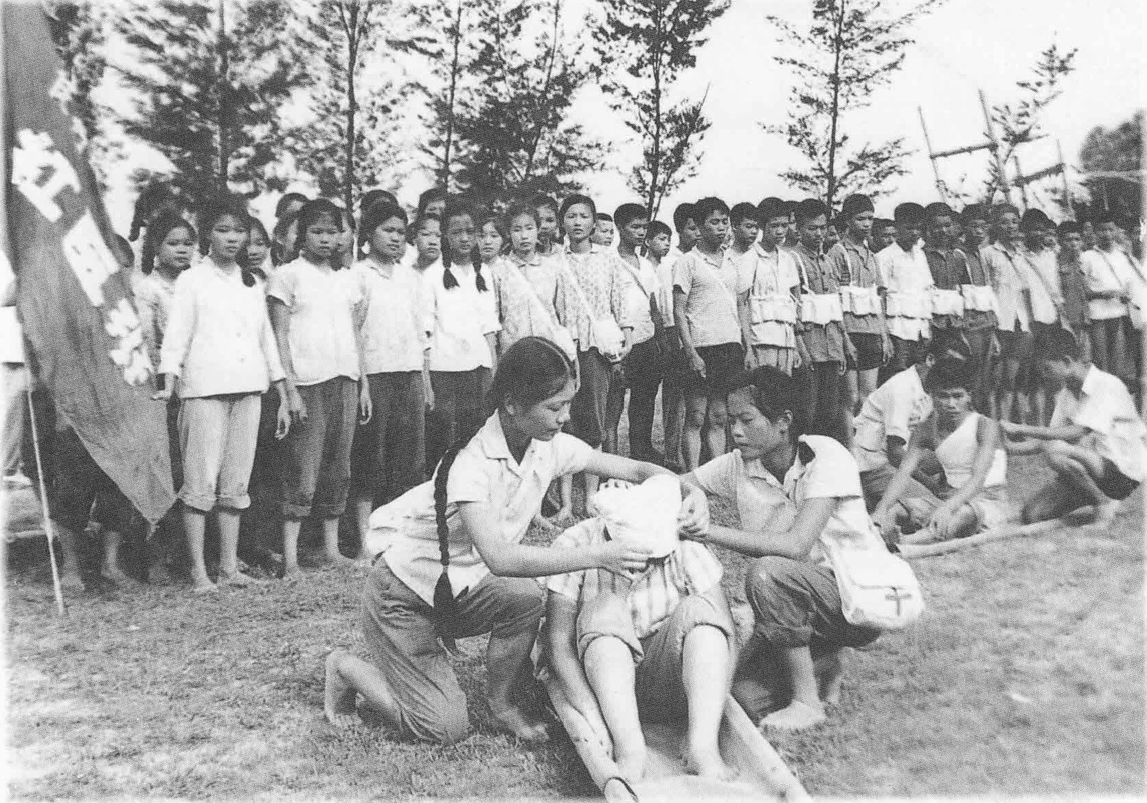1979年(五·七中学)“红医班”在进行救护练习
