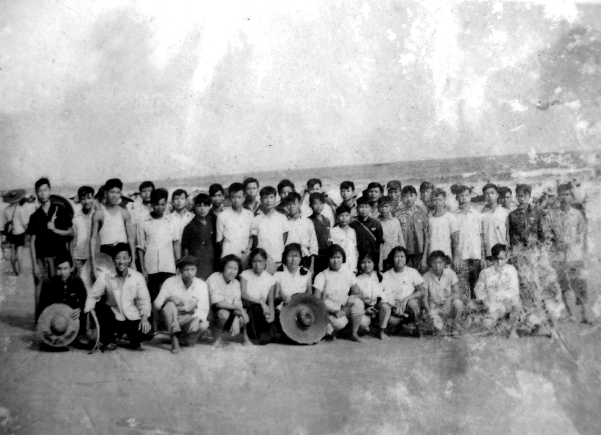 1963年秋学校百里徒步,66届高三2班同学海边合影