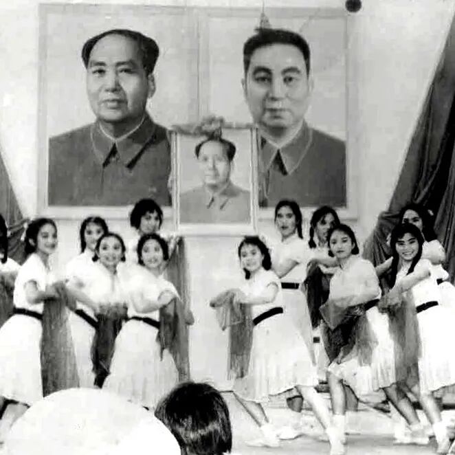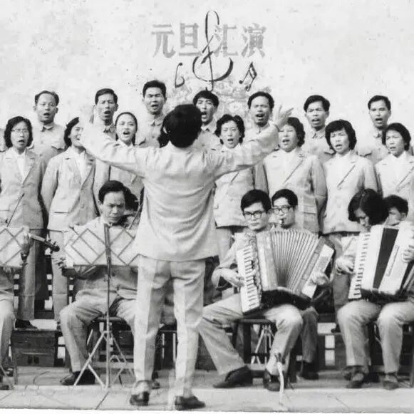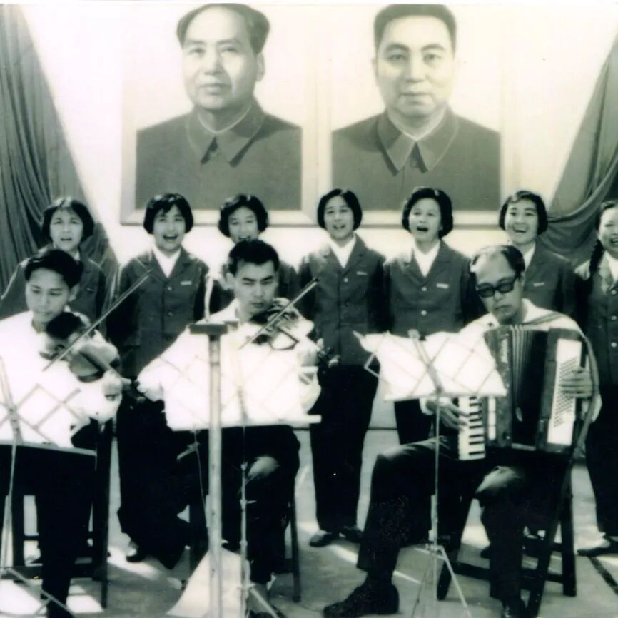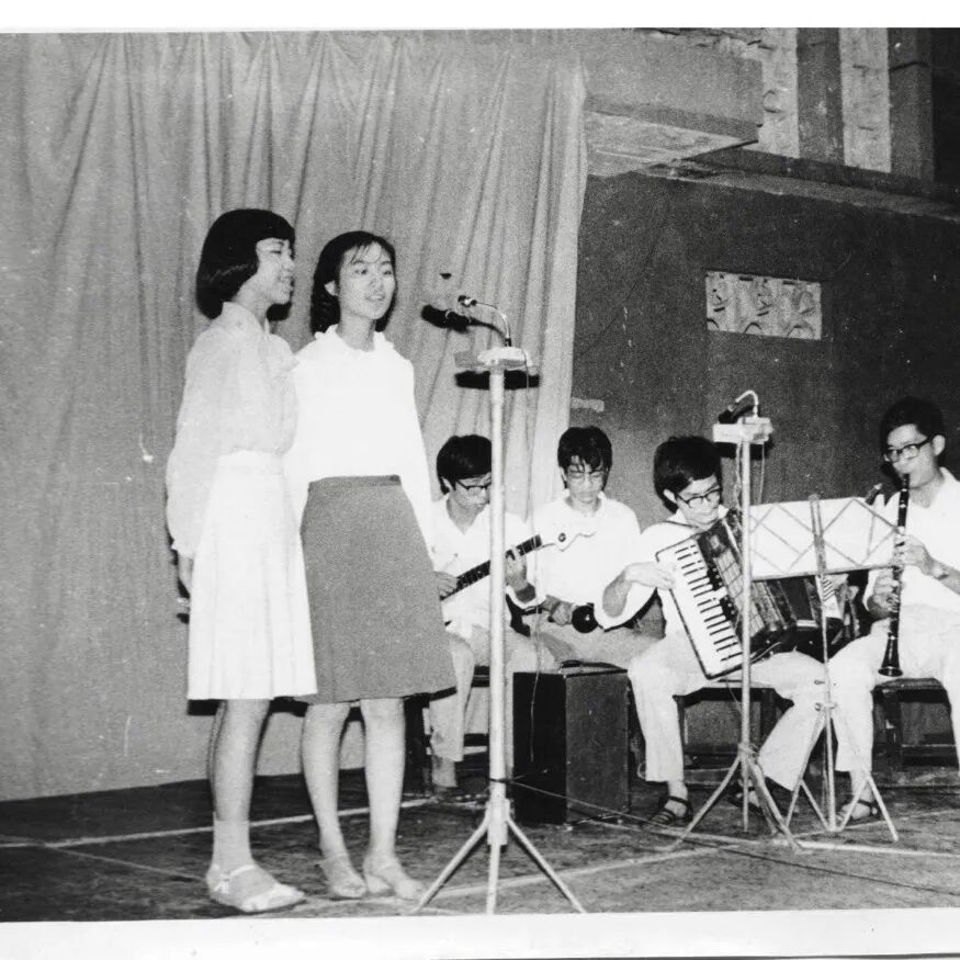 “文艺为工农兵服务”,1970年7月文娱表演后学生合影
