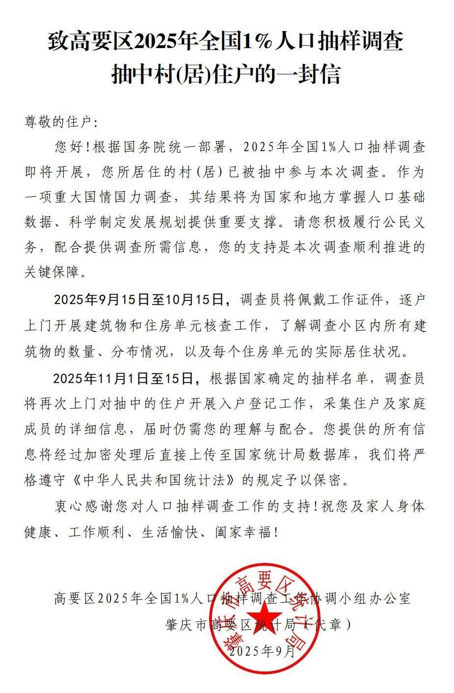 2025年9月15日至10月15日为住房核查阶段,村(居)调查员将对抽中辖区内所有住房进行情况核实。2025年11月1日至15日为居民信息登记阶段,调查员将入户对被抽中住房的住户信息进行详细登记。